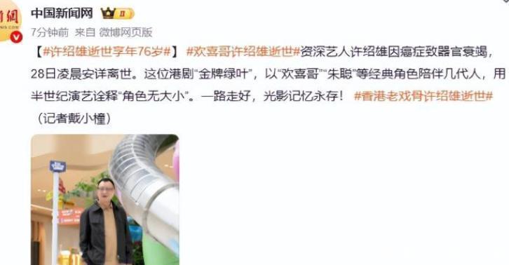 众星悼念!76岁“欢喜哥”许绍雄病逝,曾在影视行业工作超50年